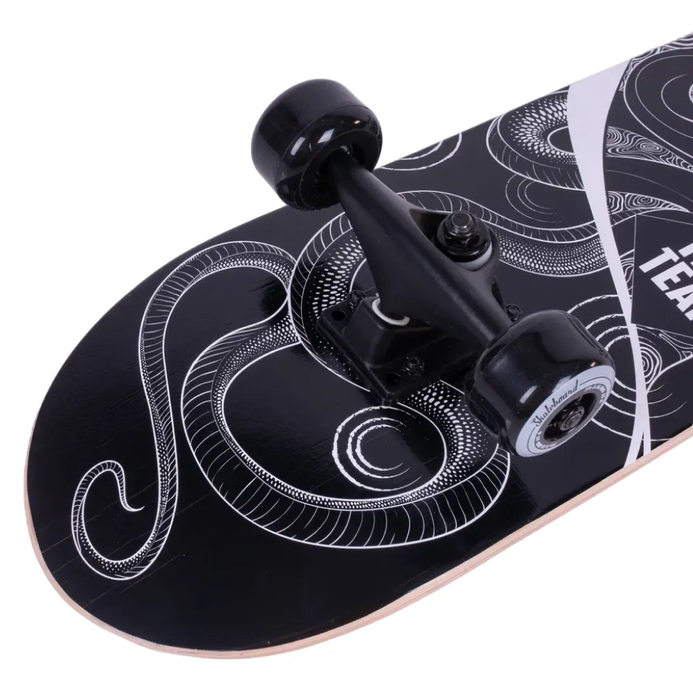 Нижняя часть деки украшена крутым принтом в черном цвете со змеей, что добавляет этому скейтборду индивидуальности и характера. Тип деки с двойным концевым загибом (Double Kick) позволяет выполнять самые сложные трюки с легкостью.