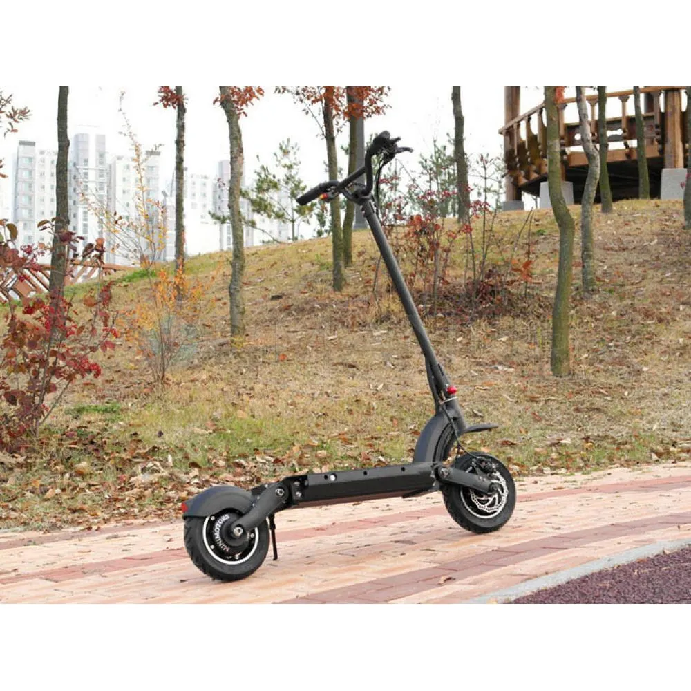 Характеристики модели достаточно впечатляют. Они удовлетворят потребности самых капризных пользователей. Мощность двигателя 800 Вт, при этом максимальная скорость электросамоката 50 км/ч, электронная и дисковая тормозная система позволяют чувствовать уверенность в городской суете. Весовая нагрузка на самокат достигает 120 кг. При этом, амортизация позволяет комфортно преодолевать неровности дорожного покрытия. Рама из алюминия, достаточно прочная и легкая. Диаметр колес 10 дюймов отлично подходит для элекросамоката такой мощности.