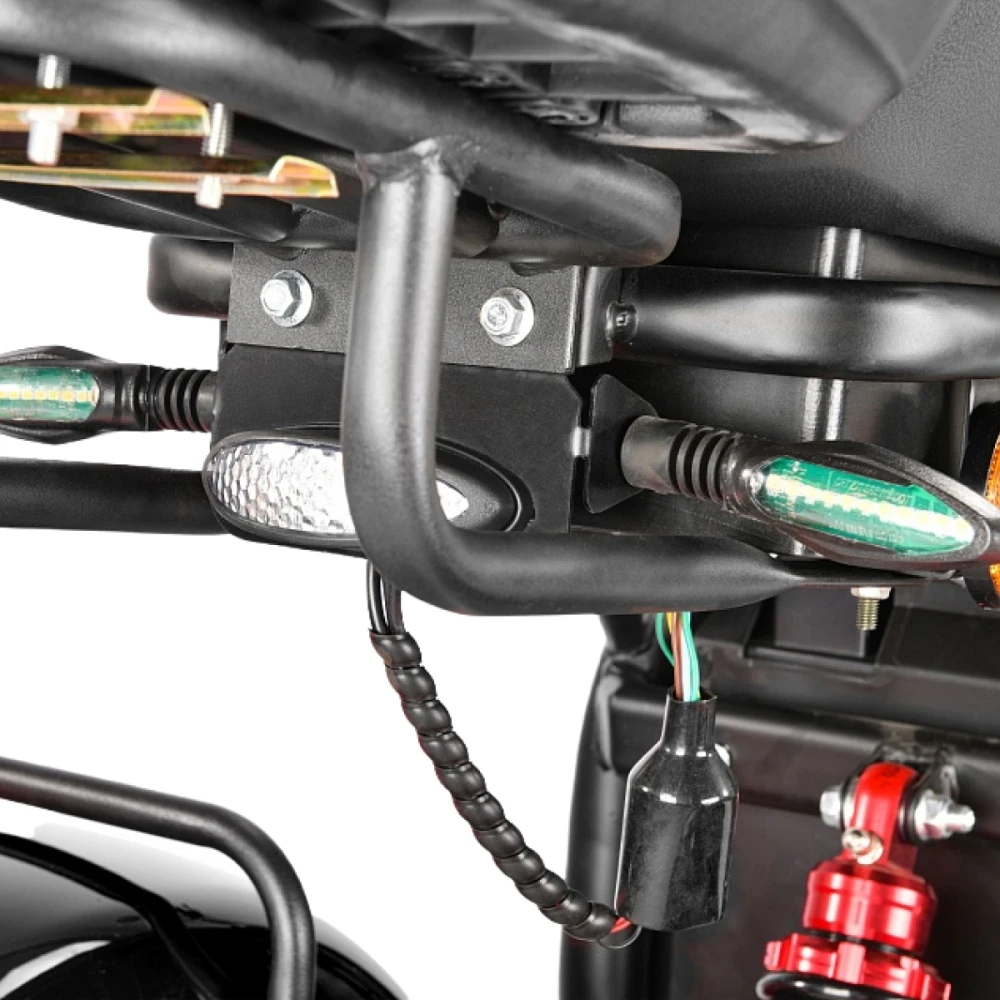 Наличие большой передней светодиодной фары, зеркал заднего обзора допускает безопасное движение в вечернее и ночное время.