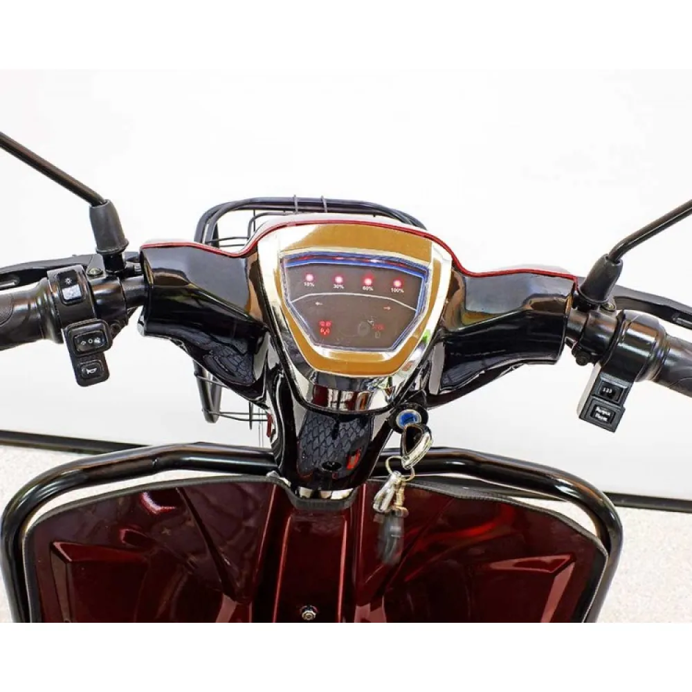 Модель представляет собой надежную конструкцию с усиленной рамой из прочного металла. Характеристики техники рассчитаны на максимальную грузоподъемность для перевозки пассажиров и габаритных грузов. Мощность мотора составляет 500 Вт, обеспечивает быстрый разгон до 25 км/час за короткий период времени. Оригинальный аккумулятор предусмотрен на прохождение расстояния 45 км на одном заряде. Емкая батарея быстро заряжается, ресурс рассчитан на 700 циклов заряд/разряд. Рулевая стойка усиленная, оснащена амортизаторами для обеспечения лучшей маневренности на дороге.