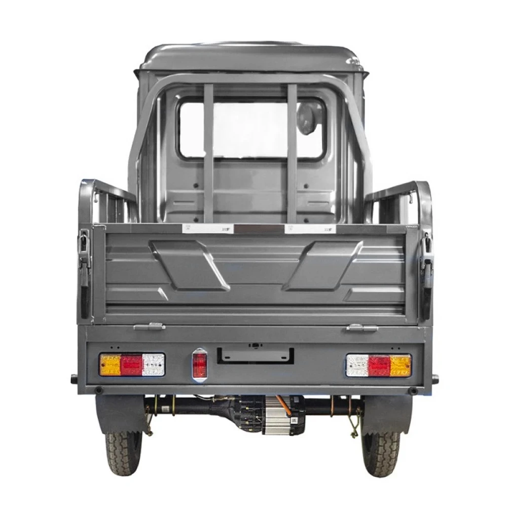 Серый Rutrike КАРГО Кабина 1500 - это надежный партнер для вашего бизнеса. Закрытый кузов защищает водителя от непогоды, позволяя работать в любых условиях. Грузовой отсек размером 1500×1050×330 мм готов принять на борт до 600 кг груза, что делает этот трицикл идеальным для городских перевозок. Мощность 1000 Ватт позволяет преодолевать до 40 км на одном заряде, а максимальная скорость составляет 25 км/ч. Управление осуществляется через мотоциклетный руль, что добавляет маневренности, а задний барабанный тормоз обеспечивает безопасность. Rutrike КАРГО - ваш верный помощник в логистике.