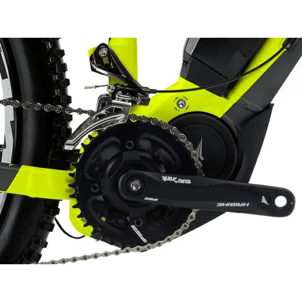 Электровелосипед Haibike SDURO HardNine 7.0, желтого цвета – экстраординарная модель с ярким цветовым оформлением. Оснащение техники мощным мотором 250 Вт с задним приводом обеспечивает 20-скоростную систему передач. Емкая АКБ 504 Втч подает питание на двигатель и позволяет разогнаться до 25 км/час. С такими показателями райдер точно сможет участвовать в велозаездах по дорожным покрытиям любого типа.  Конструкция девайса представляет собой высокую модель, изготовленную из легкого, но прочного алюминиевого сплава, при этом выдерживающую нагрузку в 120 кг. Особый способ изготовления рамы электрофэтбайка подразумевает применение и внедрение передовых технологий. Модель рассчитана на взрослых пользователей обоих полов.