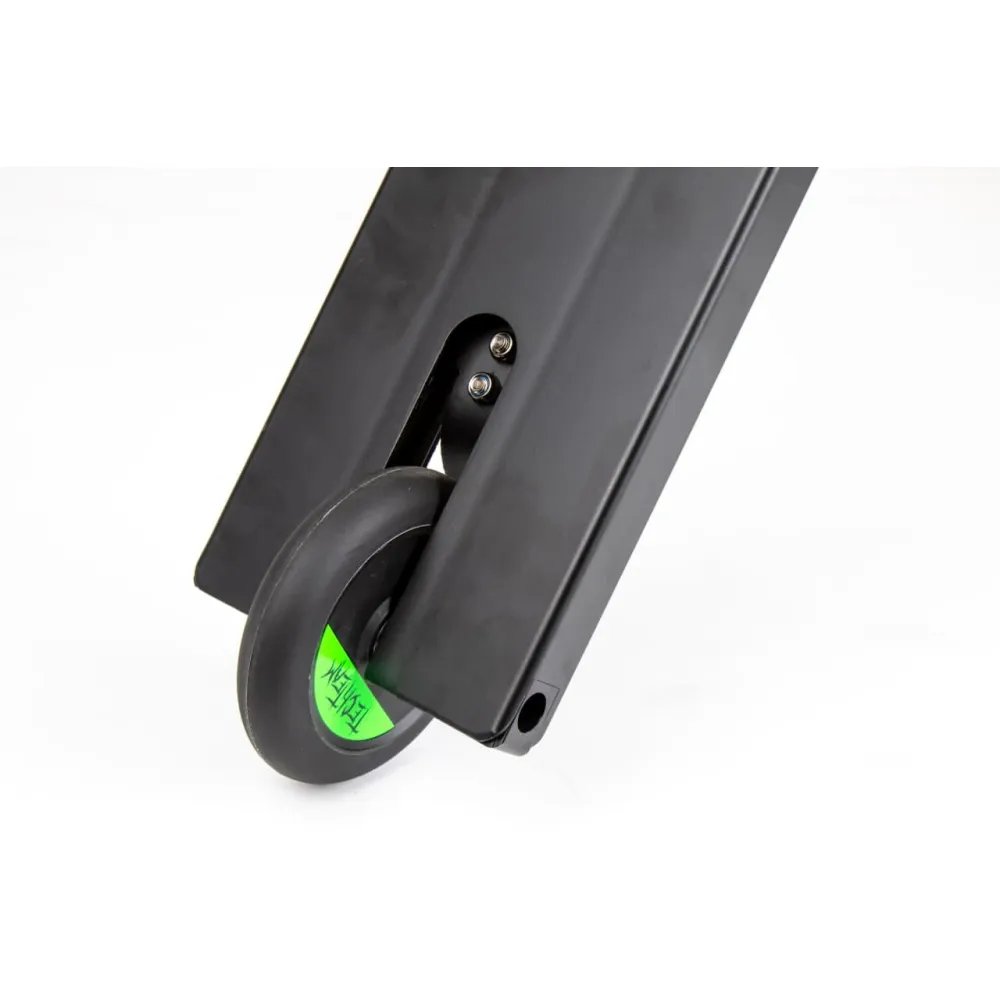 Колесная часть оснащена полиуретановым нестираемым покрытием и металлической ступицей. Модель относится к категории, складываемой. При необходимости райдер может транспортировать самокат удобным для него способом, в том числе и ручным.
